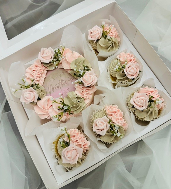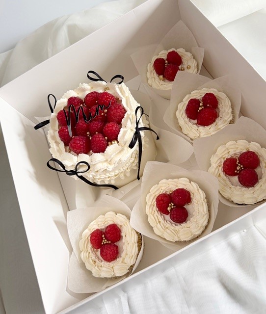 Exquisite mini cakes paired with matching cupcakes. The perfect intimate gesture for refined gifting and small, heartfelt celebrations.